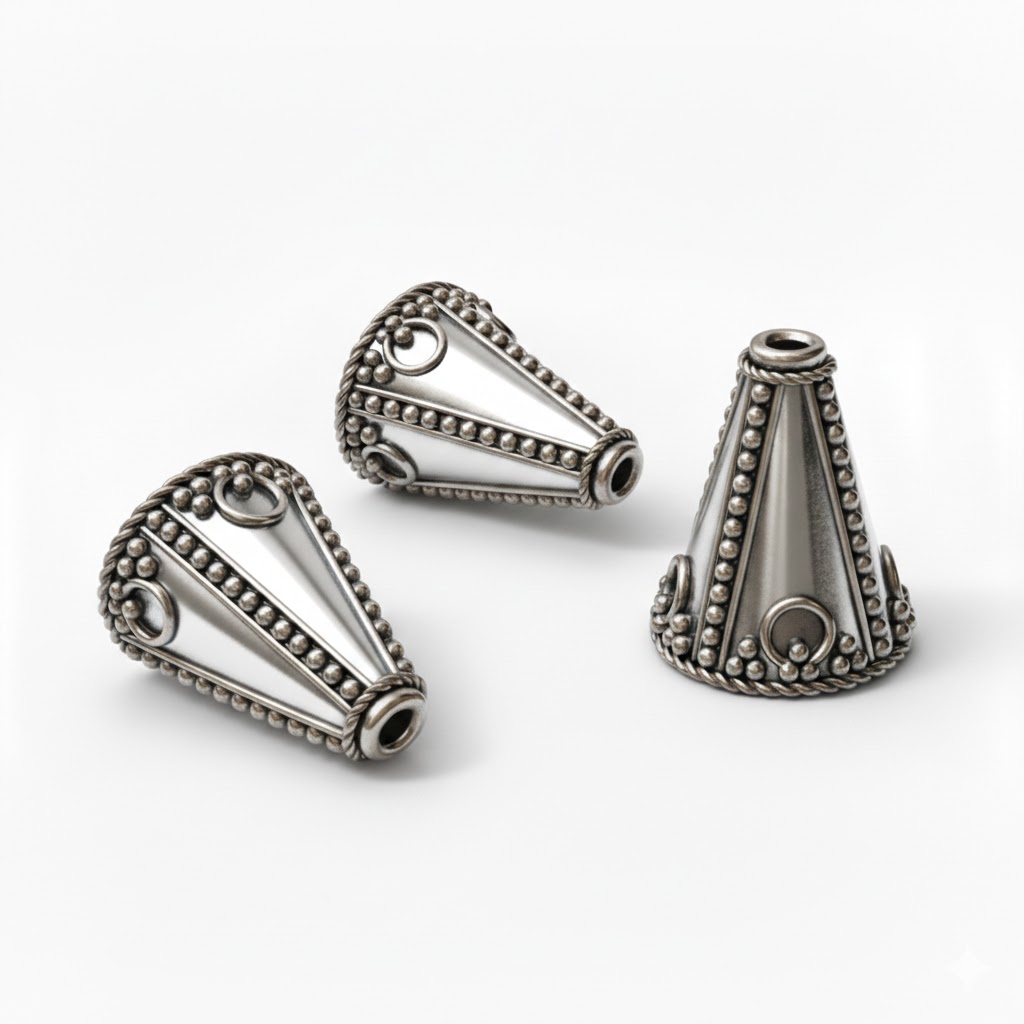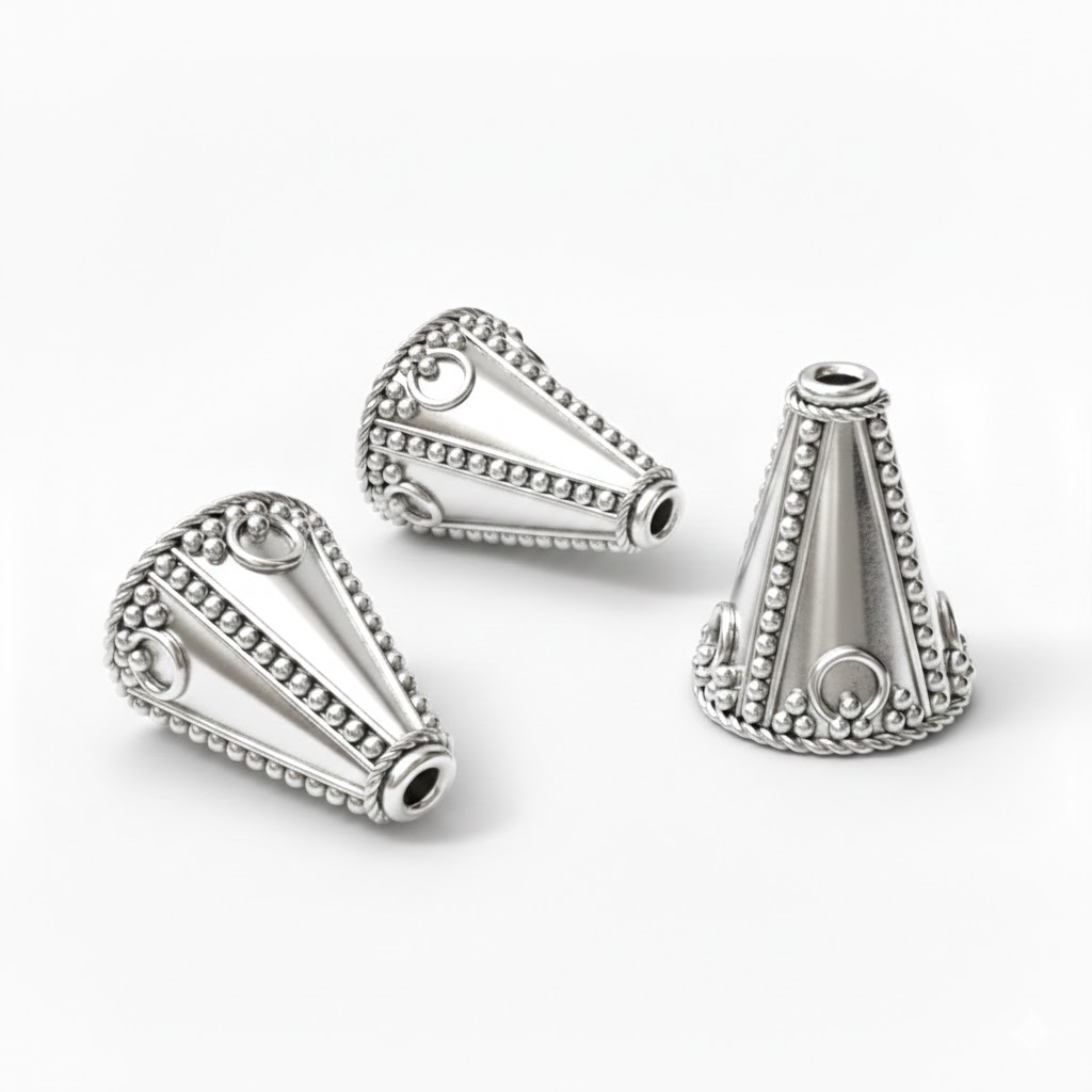 Stock your studio with our bulk packs of silver and gold plated Bali Brass Cones 14.3×11.8mm – R108. We offer competitive wholesale pricing for jewelry entrepreneurs who require consistent quality and a brilliant silver finish for their production lines.